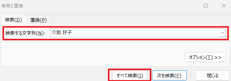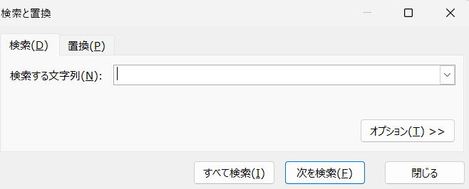 検索ダイアログボックスの開き方は以下をご確認ください。