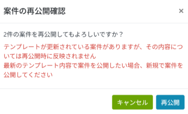 ⑤ 「停止」タブにある案件を公開しようとすると注意書きがでます!